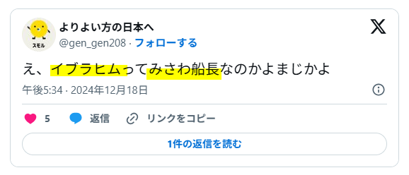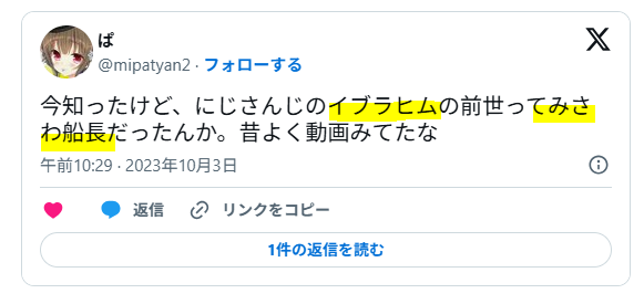 イブラヒムの前世がみさわ船長という説はXでも投稿されています。