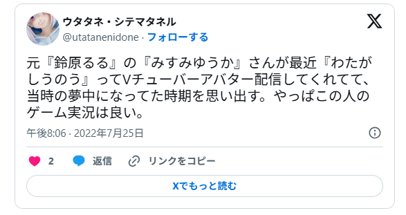 みすみゆうかさんに転生したこれからも、健康第一で無理せず楽しく活動してほしいですね!