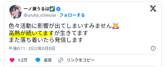 SeaDaysさんも2022年8月8日に新型コロナに罹っていることをXに投稿していていました。