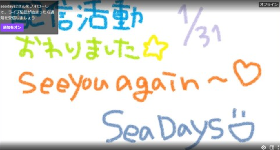 SeaDaysさんは、2019年1月31日に活動を終了しています。