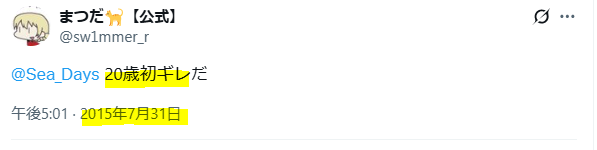また、以下のツイートから2015年7月31日時点で20歳だったことがわかります。